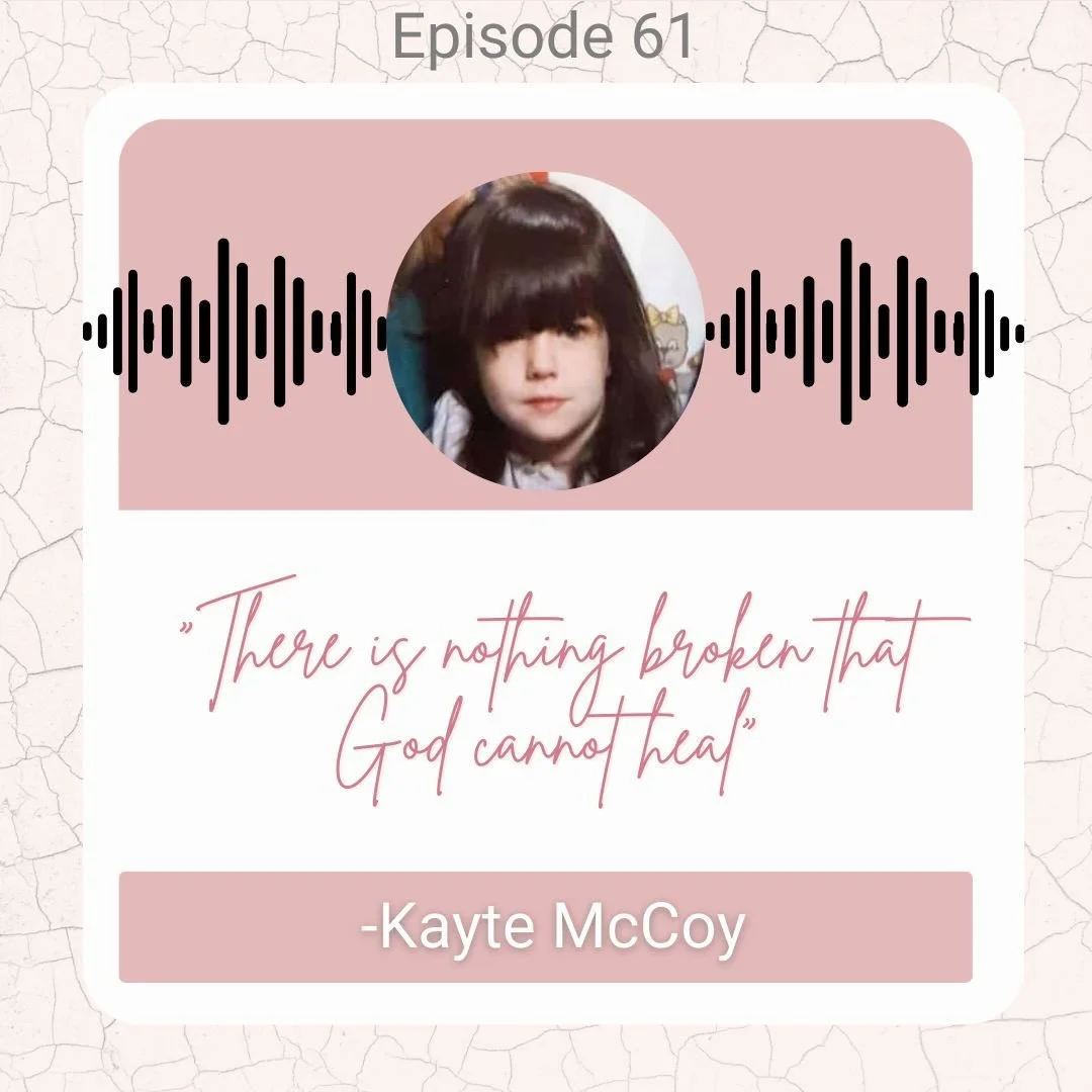 My prayer is that as you listen, you’ll not only be encouraged by Kayte’s story, but that you’ll find hope for your own. Whatever ashes you might be holding, you’re not alone, lets decided to surrender those ashes back to our loving heavenly Father. For He is the One who can make something truly beautiful emerge from them.